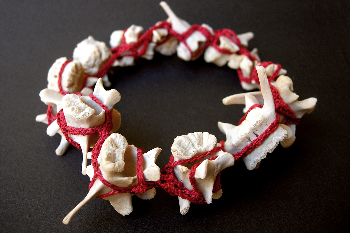 To deal with it and to find the courage to move forward, I devised a way of physically representing the healing process through what was going to become jewellery; each week that passed after the accident, I assembled one by one, from the smallest to the largest, vertebrae removed from the body of a little fox found dead in the garden. The idea was not only to mark by milestones the weeks lived since the accident, but also to create a talisman to face the coming weeks.