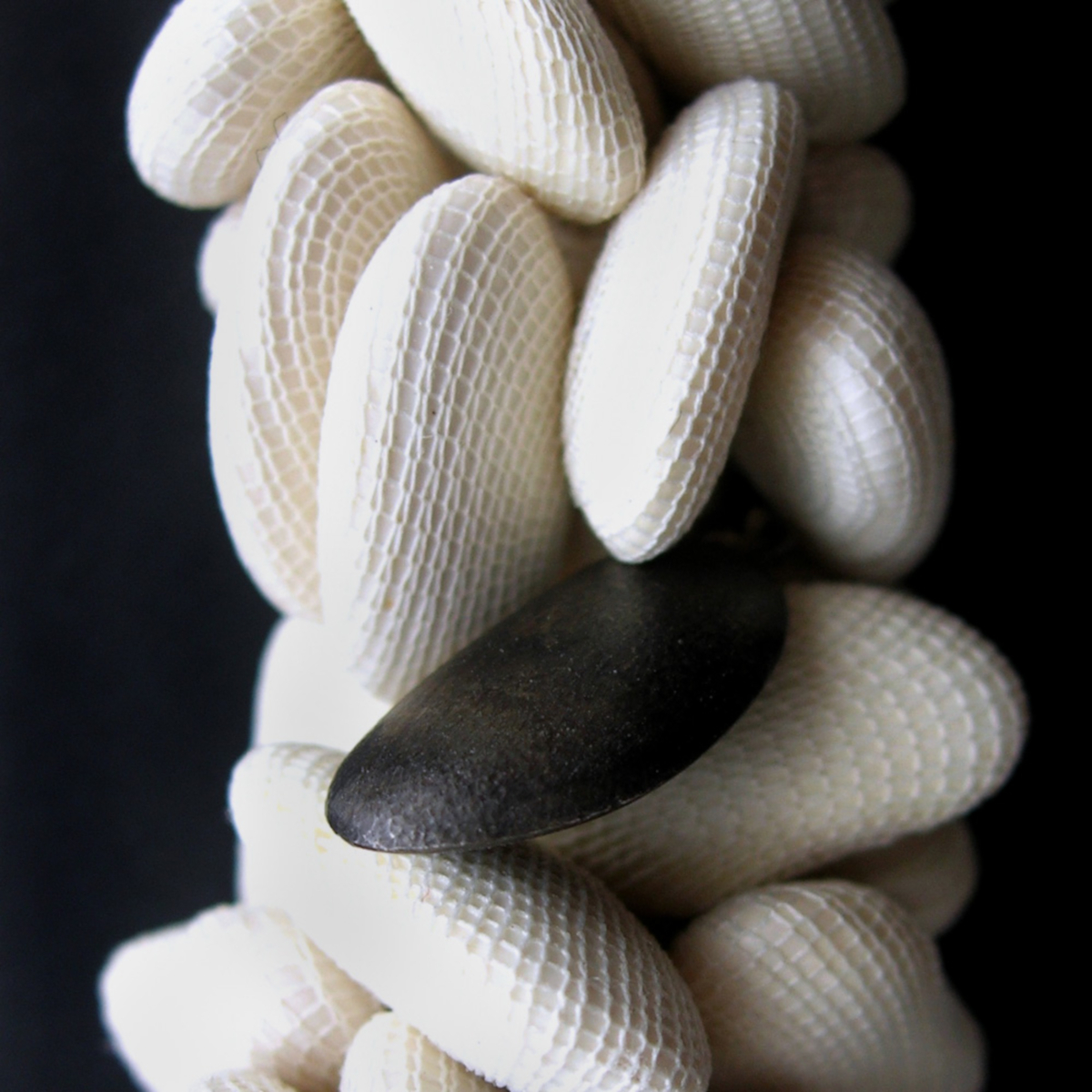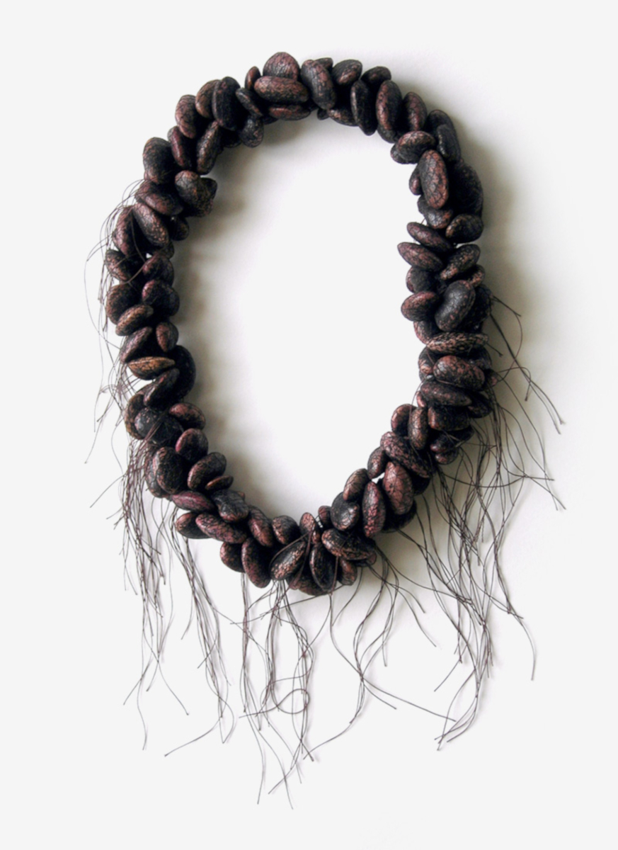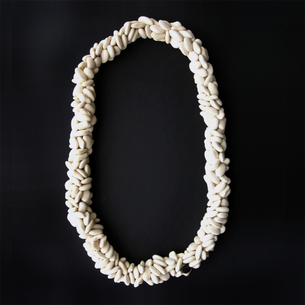 Consequently, it is the apparent fragility of these necklaces which is their strength. The complete paradox is there: if one wants to create something long term, one has to make objects that do not last. Thus, the idea is to create objects which are adaptable, recyclable, biodegradable and even perishable, and which change without producing waste in the true sense of the word, in the image of the way nature works.
